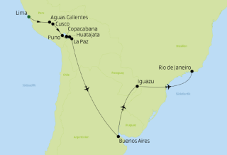 - Linienflüge (Economy Class) mit renommierten Airlines Lima – Cusco, La Paz – Buenos Aires, Buenos Aires – Iguazú, Iguazú – Rio de Janeiro inkl. 23 kg Gepäck (Umsteigeverbindungen möglich)