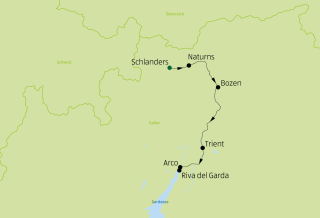 Avec une vue panoramique magnifique, tu glisses en terrain plat et parfois en légère descente le long de l'Adige, à travers de larges vallées ensoleillées, en passant par Bolzano, la capitale du Tyrol du Sud, et Trente, ville historique, jusqu'au lac de Garde et son ambiance méditerranéenne.